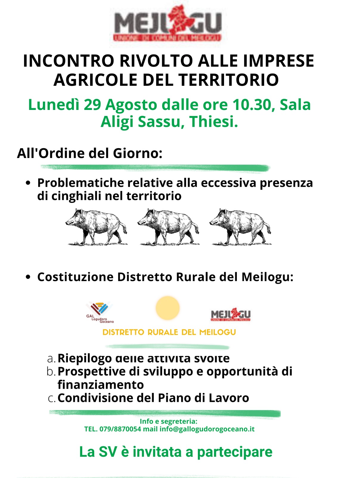 Convocazione incontro operativo costituzione Distretto Rurale del Meilogu