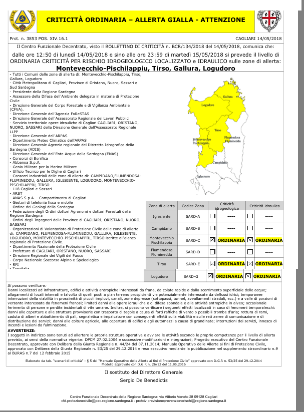 AVVISO DI CRITICITA' PER RISCHIO IDROGEOLOGICO