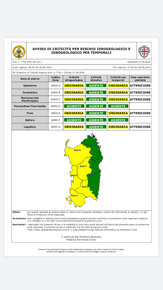 Avviso di allerta meteo.