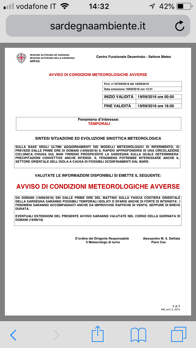 AVVISO DI CONDIZIONI METEOROLOGICHE AVVERSE del 18/10/2018